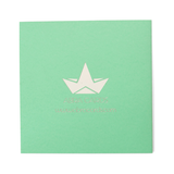 This handcrafted pop up card is made using a combination of pearlescent high quality paper. Approximately 150mm x 150mm (l x w) when closed and comes in a sealed cellophane wrapped with an ivory envelope.