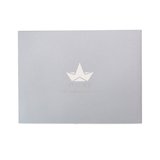 This handcrafted pop up card is made using a combination of pearlescent high quality paper. Approximately 150mm x 200mm (l x w) when closed and comes in a sealed cellophane wrapped with an ivory envelope.