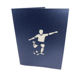 There aren’t many football-themed cards on the market let alone pop up cards. This Football Pop up card is one among our most coveted range of sports-themed cards. Open the card, and you will see the goalie diving to save the winning goal. The base of the card is an iridescent printed green purposefully made to mimic the pristine grass,