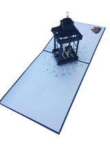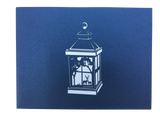 There is something serene about the white and blue color combination. The Christmas Lantern pop up card is a perfect example of their culmination. The white also represents the show, and the lantern takes the role of the keeper of the light. The tree and reindeer inside the lantern give us a glimpse of Christmas traditions. A meaningful Christmas greeting card that is designed for eloquence.