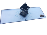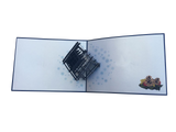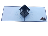 This handcrafted pop up card is made using a combination of high quality paper. Approximately 20cm x 15cm (l x w) when closed and comes in a sealed cellophane wrapped with an ivory envelope.