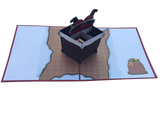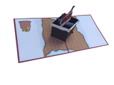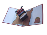 This handcrafted pop up card is made using a combination of high quality paper. Approximately 15cm x 15cm (l x w) when closed and comes in a sealed cellophane wrapped with an ivory envelope.