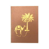 The golden sands, date palms, red-hot sun, and camels walking in unison, there is no better way to capture the essence of Arabia. It holds a deep and rich history before the rise of skyscrapers that rise to touch the sky. The card perfectly embodies the past and the hard work behind the modern UAE. The desert scene pop up card is the perfect souvenir or a beautiful addition to grace your showcase.
