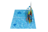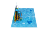 Want to get a better glimpse of under the sea pop up card is something that any water baby will appreciate. Some of the most stunning fish and coral reef have been intricately detailed in print and laser cut, where it has been positioned on a stunning water reflection base. An irresistible pop up card!