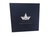 This handcrafted pop up card is made using a combination of pearlescent high quality paper. Approximately 150mm x 150mm (l x w) when closed and comes in a sealed cellophane wrapped with an ivory envelope.