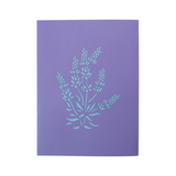 The Lavender Vase pop up card encases the sheer beauty and elegance of lavender on paper. The play on colors in the Lavender Vase pop up card is more complex than it seems at first glance. The lavender leaves in a white vase symbolize royalty and peace. The blue and lavender colored base projects calmness and happiness. The perfect floral gift for the ones your care!