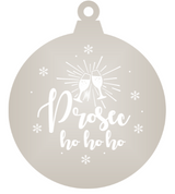 Our 'Prosec-ho-ho-ho!' bauble etched is a beautiful Christmas ornament. It comes in mirrored acrylic with a white ribbon - where you can select the material - either bronze, silver or gold.