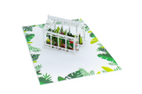 The Greenhouse pop up card brilliantly encompass the flourishing flowers in the glass house. The variety of colours is stunning and is centralised with printed foliage detailing on the base of the card. This is a perfect gift for any occasion .