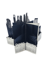 This handcrafted pop up card is made using a combination of pearlescent high quality paper. Approximately 13cm x 23cm (l x w) when closed and comes in a wrapped box.