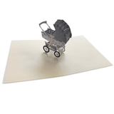 What better way to celebrate the arrival or impending arrival of a new member to join the family! The pop up card baby stroller / pram card is beautifully designed and has lots of stunning intricate detailing in a neutral iced white and light grey. It is a very thoughtful gift and carries a deep and beautiful message with itself.