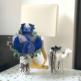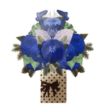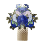 This vibrant deep and light blue flowers has a variety of stunning printed detailing and pops up on its own, freestanding without any additional support - making it a beautiful addition to any desk or mantlepiece!