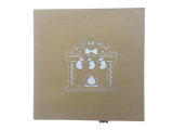 This handcrafted pop up card is made using a combination of high quality paper. Approximately 15cm x 15cm (l x w) when closed and comes in a sealed cellophane wrapped with an ivory envelope.