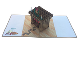 The slow-burning fire, spreading the warmth throughout the house during the snowy Christmas Eve. The Christmas fireplace pop up card captures the essence of the true Christmas tradition. You can even notice the tiny socks hanging from the top, waiting for Santa to bestow amazing Christmas gifts.