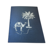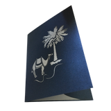 A beautiful variation to our sunrise desert scene card. Our silver and blue sands, date palms, red-hot sun, and camels walking in unison, there is no better way to capture the essence of Arabia. It holds a deep and rich history as the day closes on the high skyscrapers that rise to touch the sky.