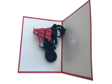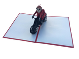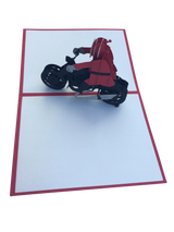 Say Hi to the modern Santa who loves to sport a Motorbike! The Santa on a motorbike pop up card stands out form conventional Christmas cards with a modern twist. It is like having Valentino Rossi delivering your presents! The design takes meticulous care in getting the details right. The result is a Christmas card that is sure to become a conversation starter!